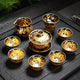 This set features a matte dark clay exterior contrasted with luxurious gold interiors, complemented by intricate gold detailing on the surface for an elevated tea experience.